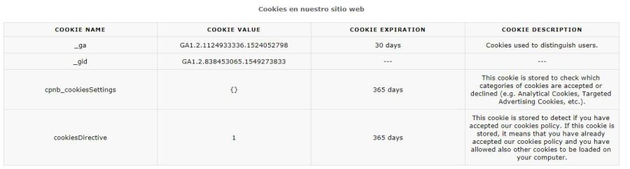 Si usamos otro tipo de cookies que no sean las necesarias, podrás consultar la política de cookies en el enlace correspondiente desde el inicio de nuestra web.